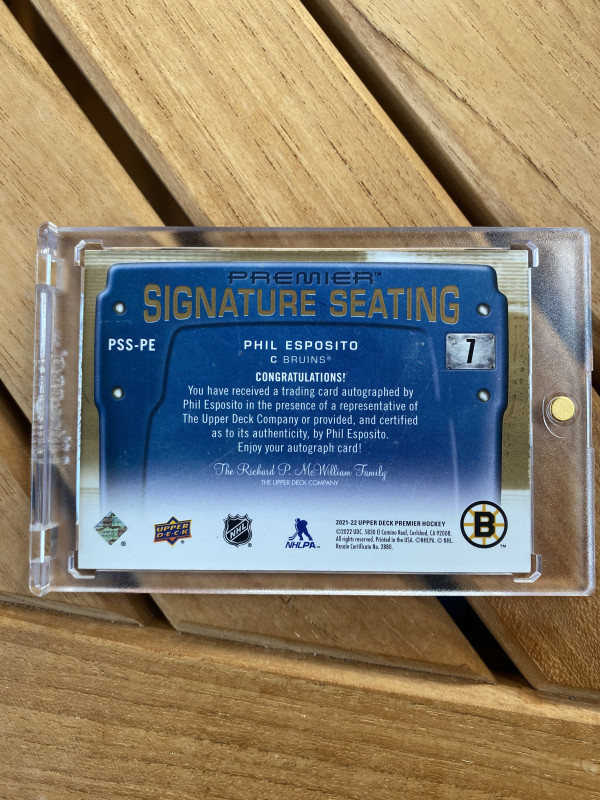 Phil Esposito 2021-22 Upper Deck Premier Signature Seating Gold Autograph /5