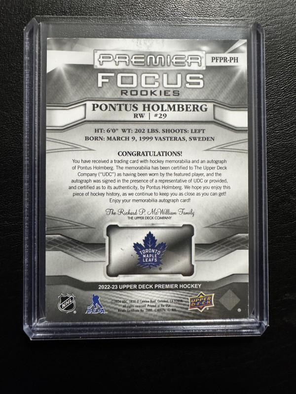 Pontus Holmberg - 2022/23 Upper Deck Premier 052/125