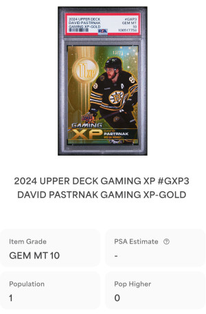 🔥PSA 10 Pop 1🔥2024-25 Upper Deck David Pastrnak Gaming XP Gold #/25