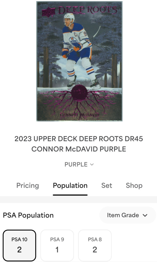 🔥PSA 10 Pop 2🔥2023-24 Upper Deck Connor McDavid Deep Roots Purple