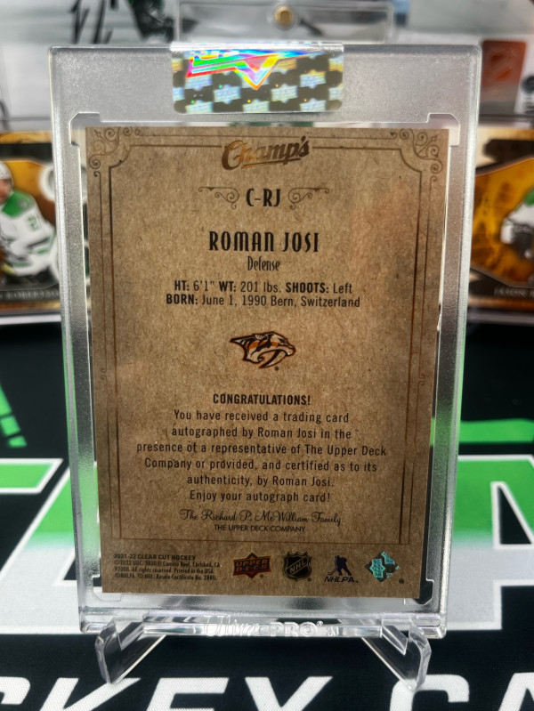 Roman Josi 2021-22 UD Clear Cut Champs Auto