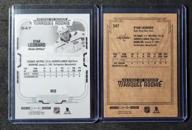 Ryan Leonard Rookie 2 Card Lot 1 = O-Pee-Chee Red 1 = O-Pee-Chee Marquee Rookie Retro You get both