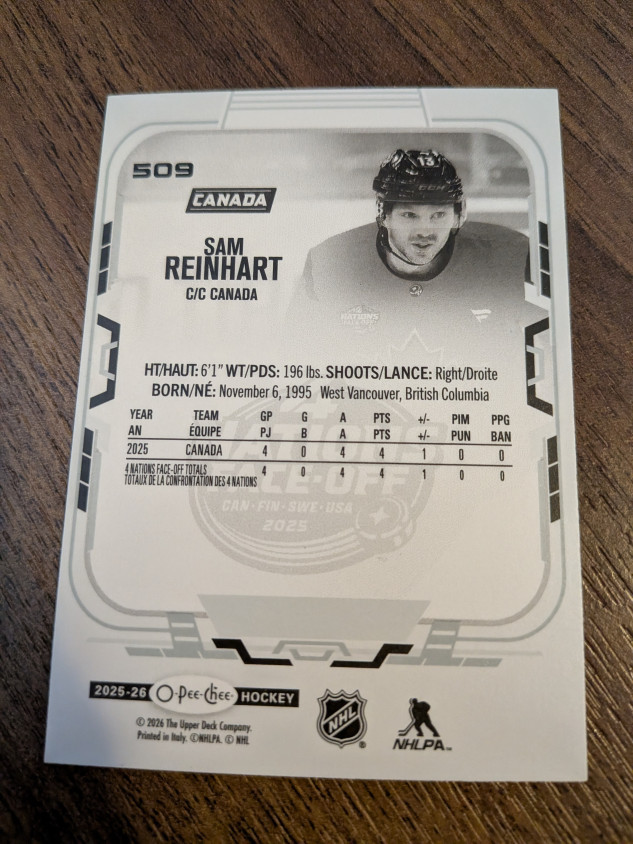 Sam Reinhart 4 Nations Face-off OPC O-pee-Chee 2025-26