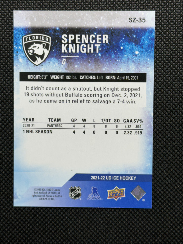 Spencer Knight 21/22 ICE Subzero Rookies Gold /24