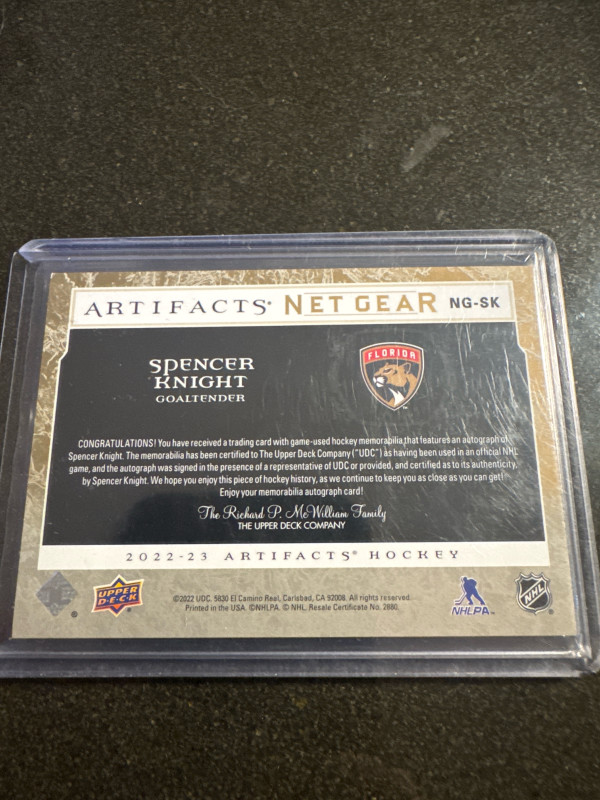 Spencer Knight Artifacts Net Gear Patch Auto /25
