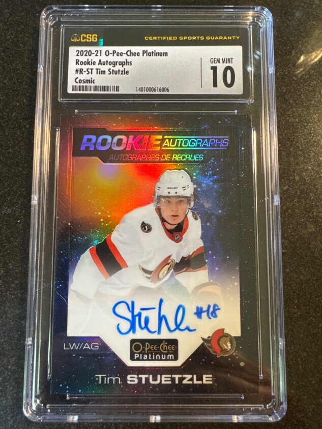 Tim Stutzle cosmic o pee chee rookie autographs csg 10 /75