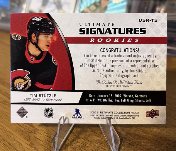 Tim Stutzle Ultimate Collection Rookie Signatures 2020 Ultimate Collection
