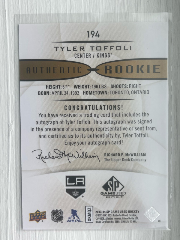 Tyler Toffoli 2013/14 SP Authentic Game Used Rookies Auto 194