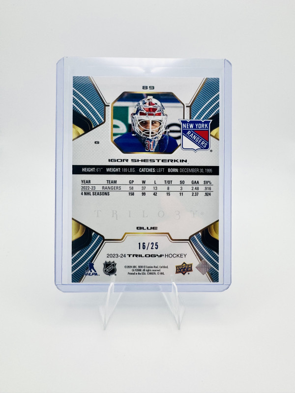 Upper Deck 2023-24 Trilogy Igor Shesterkin #89 Blue 16/25 Rangers