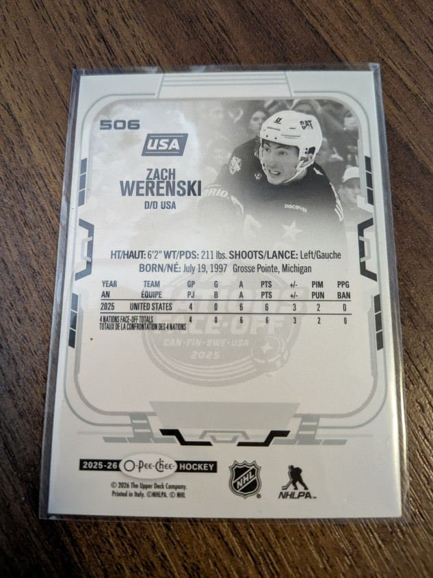 Zach Werenski 4 Nations Face-off OPC O-pee-Chee 2025-26