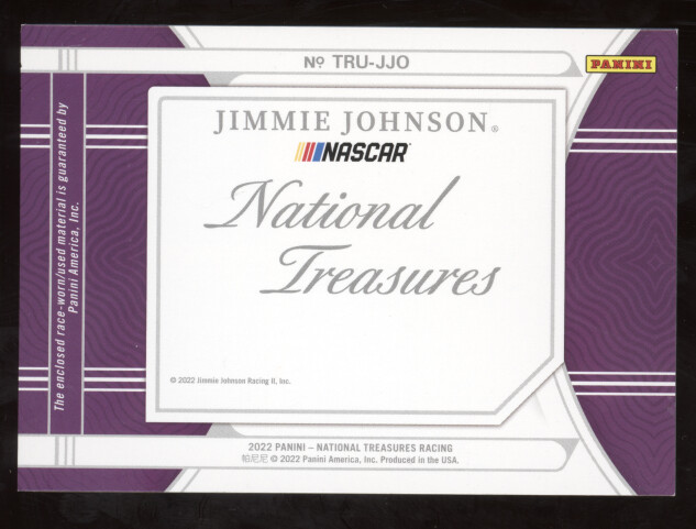 You are purchasing a 2022 Panini National Treasures Racing Jimmie Johnson #TRU-JJO Race-Used Gloves 11/25. You will receive the exact item in the photographs. Thank you for looking.