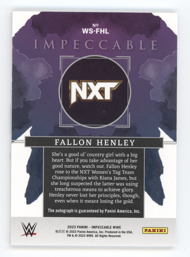 You are purchasing a 2023 Panini Impeccable WWE Watercolor Fallon Henley #WS-FHL Silver Autograph 10/25. You will receive the exact item in the photographs. Thank you for looking.
