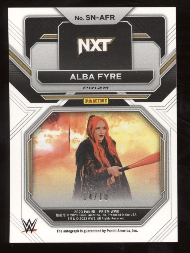 You are purchasing a 2023 Panini Prizm WWE Sensational Signatures Alba Fyre #SN-AFR Gold Under Card 04/10. You will receive the exact item in the photographs. Thank you for looking.