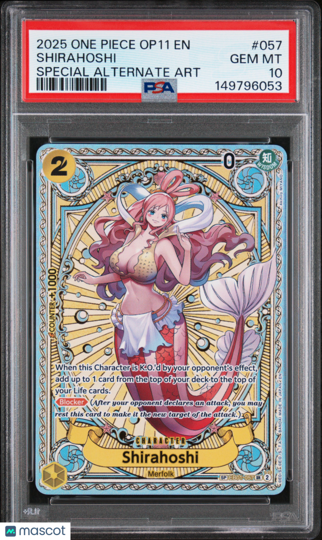 You are purchasing a 2025 One Piece A Fist Of Divine Speed Shirahoshi Special Alternate Art PSA 10 #057. You will receive the exact item in the photographs. Thank you for looking.