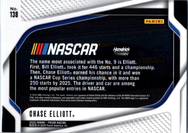 This is a nice example of a 2025 Panini Prizm #138 Chase Elliott