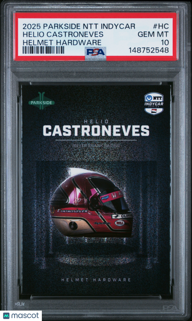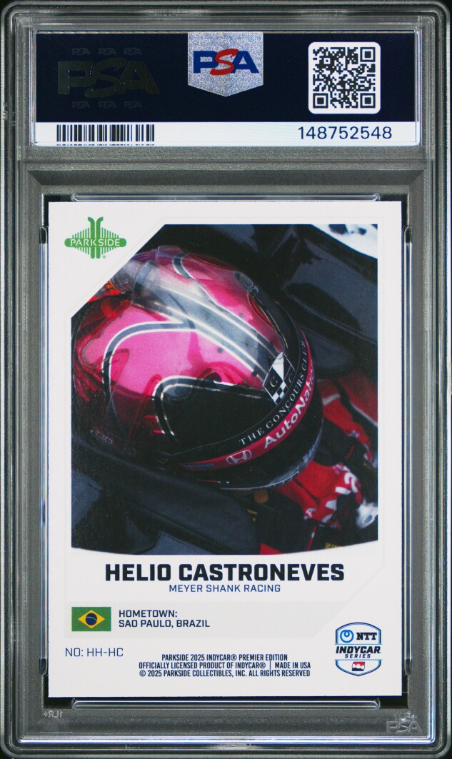 You are purchasing a 2025 Parkside NTT Indycar Helmet Hardware Helio Castroneves #HC PSA 10. Thank you for looking.