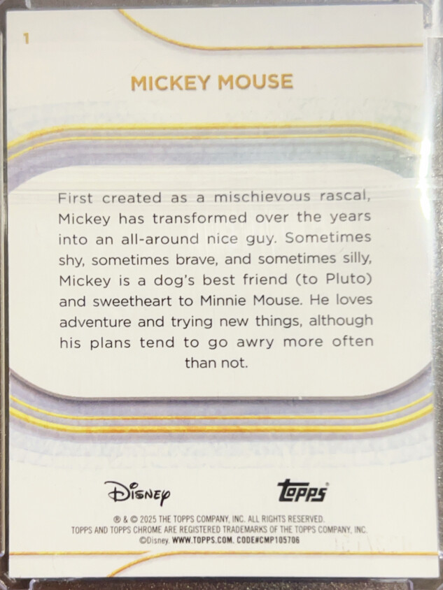 You are purchasing a 2025 Topps Chrome Disney Mickey Mouse 022/150 #1. You will receive the exact item in the photographs. Thank you for looking.