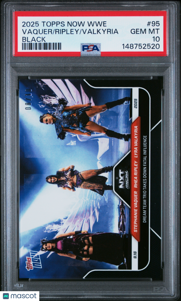 You are purchasing a 2025 Topps Now WWE Vaquer Ripley Valkyria #95 Black /10 PSA 10. Thank you for looking.