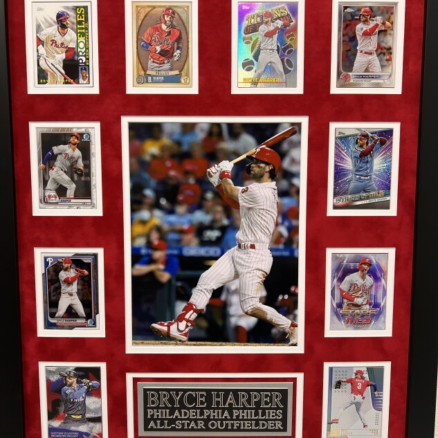 Up for sale is a Custom Framed Photo hand signed by Bryce Harper of the Philadelphia Phillies. This autographed photo is professionally authenticated by , ensuring authenticity for collectors and fans alike.