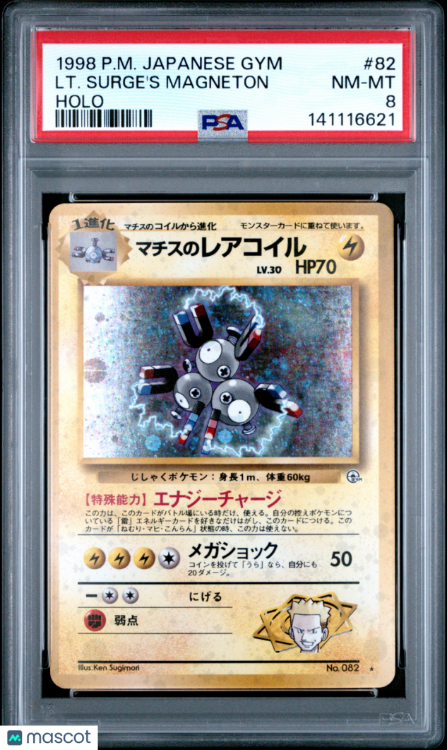 You are purchasing a 1998 Pokemon Japanese Gym LT. Surge's Magneton Japanese Holo PSA 8 #82. You will receive the exact item in the photographs. Thank you for looking.