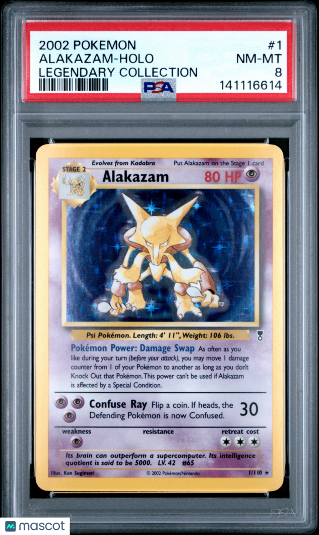 You are purchasing a 2002 Pokemon Legendary Collection Alakazam Holo Legendary Collection PSA 8 #1. You will receive the exact item in the photographs. Thank you for looking.