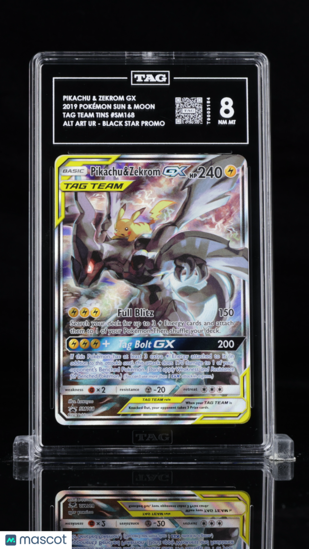 Don’t miss your chance to own this highly sought-after 2019 Pokémon Sun & Moon Black Star Promos Pikachu & Zekrom GX card, professionally graded an impressive 8 by Technical Authentication & Grading (TAG)! This card is a standout addition for collectors and players alike, featuring the iconic Pikachu & Zekrom GX duo from the popular Sun & Moon promo set.
