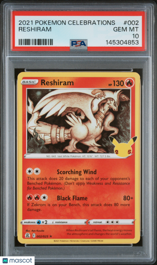 You are purchasing a 2021 Pokemon Celebrations Reshiram PSA 10 #002. You will receive the exact item in the photographs. Thank you for looking.