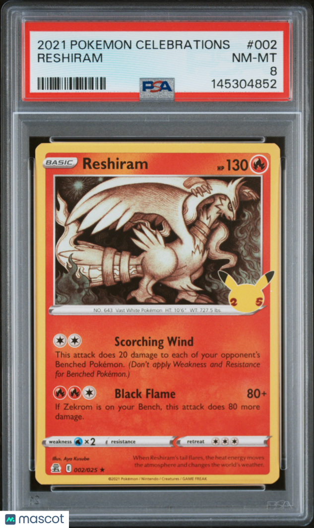 You are purchasing a 2021 Pokemon Celebrations Reshiram PSA 8 #002. You will receive the exact item in the photographs. Thank you for looking.