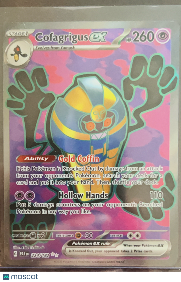 You are purchasing a 2023 Paradox Rift Cofagrigus EX Illustration Rare #224/182. You will receive the exact item in the photographs. Thank you for looking.