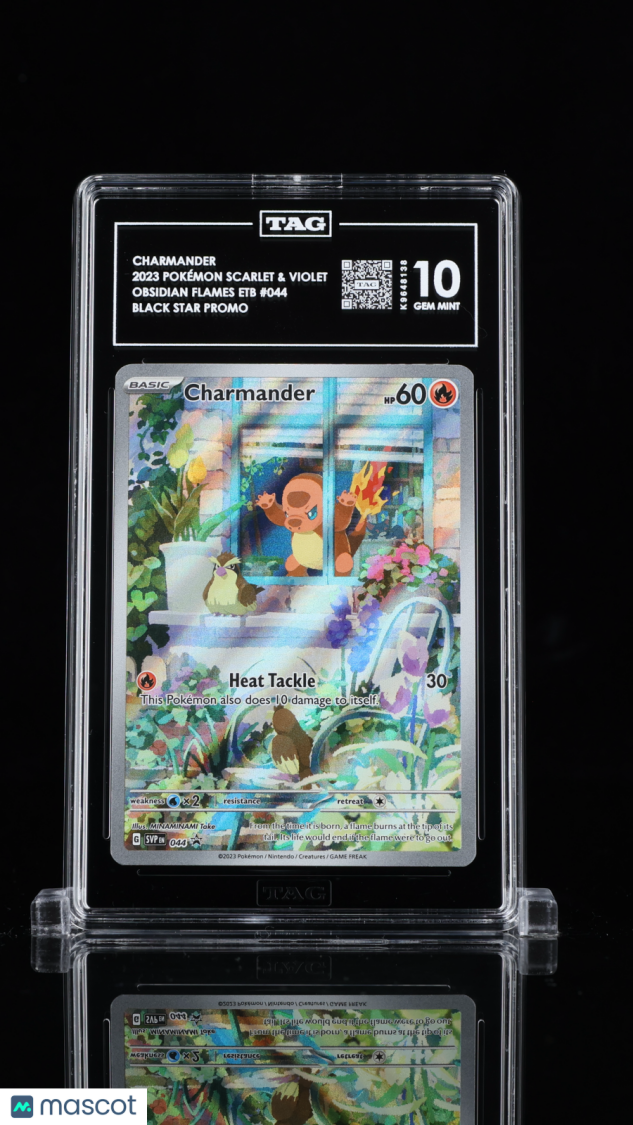 This Charmander card comes directly from the exclusive Scarlet & Violet Black Star Promos set and features the unique promo designation. With its flawless grade, official TAG certification number K9648138, and vibrant artwork, this card is ready to shine in your collection or as an investment piece. Secure this gem today and elevate your Pokémon game!