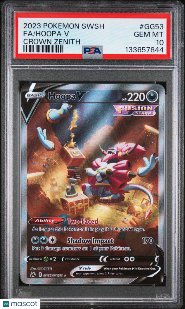 You are purchasing a 2023 Pokemon Sword And Shield Crown Zenith Hoopa V Fa Crown Zenith PSA 10 #GG53. You will receive the exact item in the photographs. Thank you for looking.