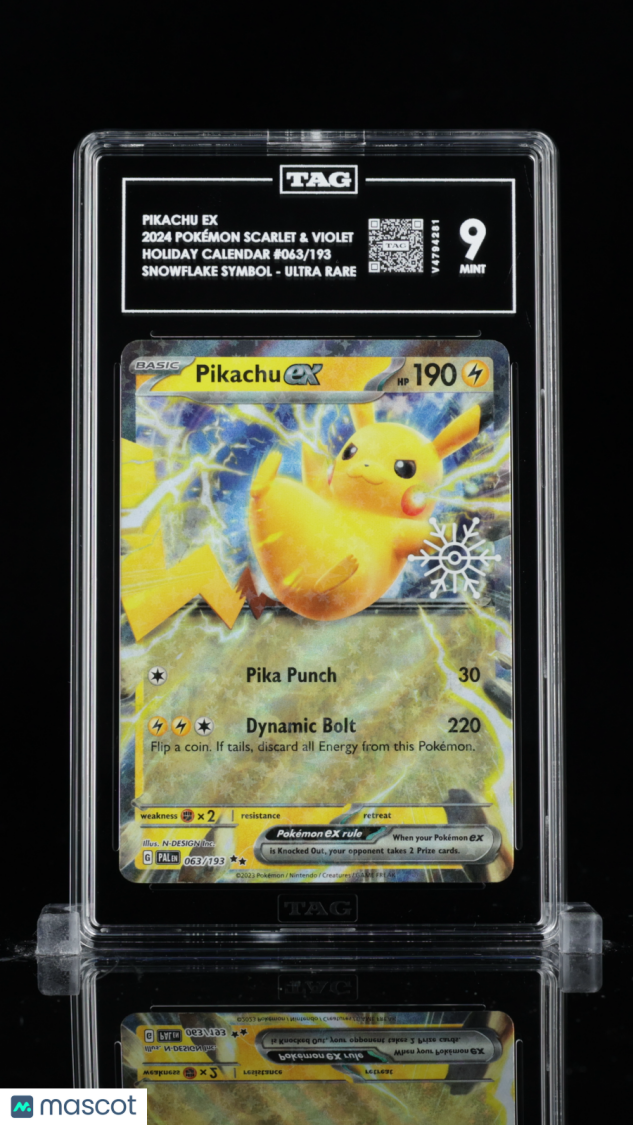 With official TAG certification and a unique certification number (V4794281), this card guarantees authenticity and quality. Secure this impressive Pikachu ex before it’s gone—perfect for your Pokémon TCG collection or as a special gift for any Pokémon enthusiast!