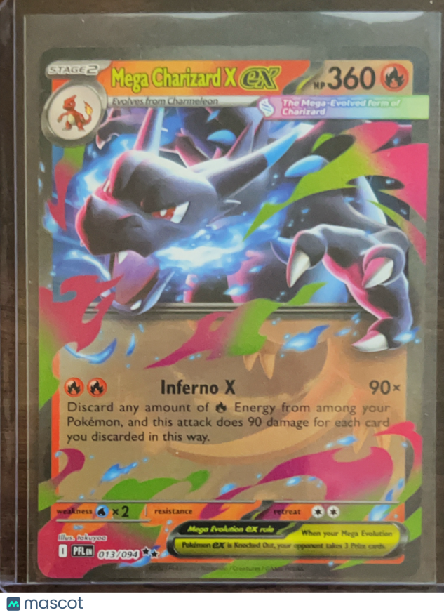You are purchasing a 2025 Mega Evolution – Phantasmal Flames Mega Charizard X EX EX #13/94. You will receive the exact item in the photographs. Thank you for looking.