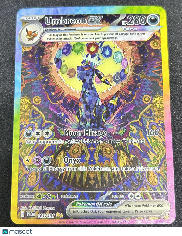 You are purchasing a 2025 Pokemon Scarlet & Violet White Flare Umbreon EX Holo Secret Rare FA #161/131. You will receive the exact item in the photographs. Thank you for looking.