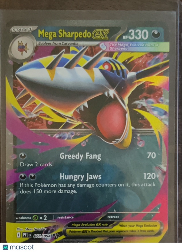 You are purchasing a 2025 Scarlet & Violet Phantasmal Flames Mega Sharpedo EX EX #61/94. You will receive the exact item in the photographs. Thank you for looking.