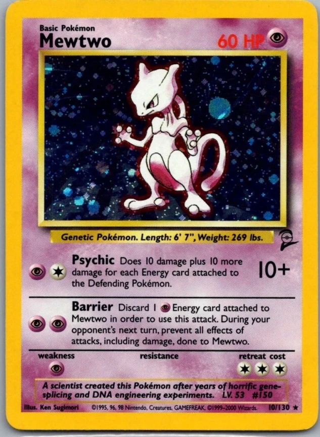 This is a nice example of a Base Set 2 #010/130 Mewtwo