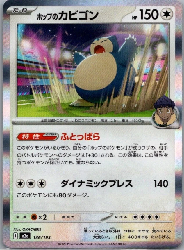 This is a nice example of a M2a: High Class Pack: MEGA Dream ex #136/193 Hop's Snorlax (Energy Symbol Pattern)