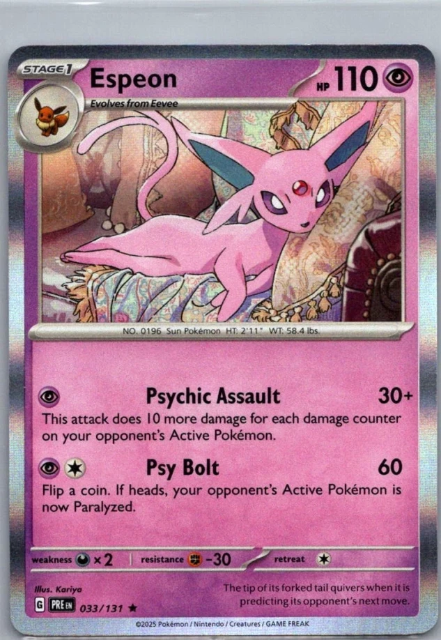 This is a nice example of a SV: Prismatic Evolutions #033/131 Espeon