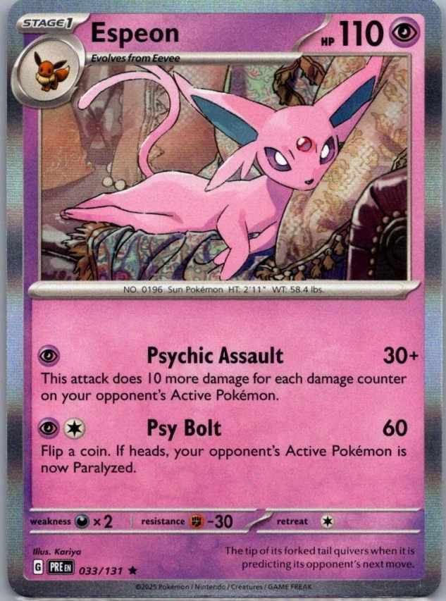 This is a nice example of a SV: Prismatic Evolutions #033/131 Espeon