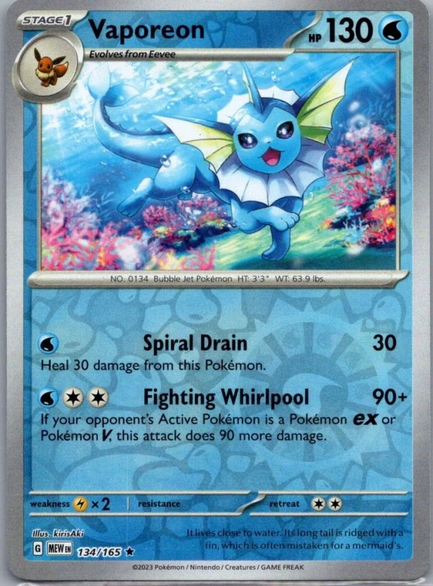 This is a nice example of a SV: Scarlet & Violet 151 #134/165 Vaporeon