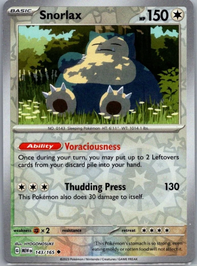 This is a nice example of a SV: Scarlet & Violet 151 #143/165 Snorlax