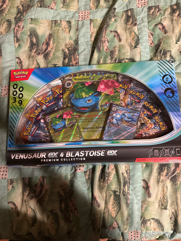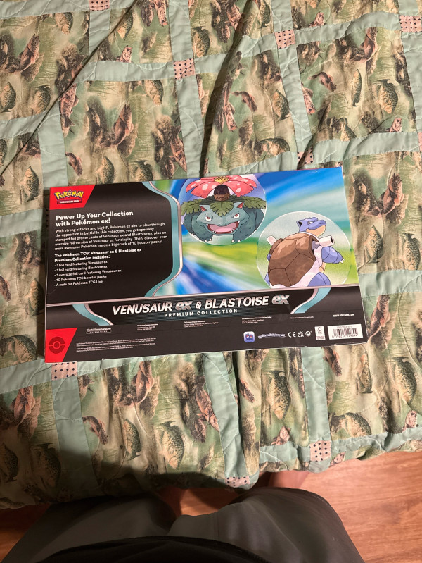 Venusaur ex and blastoise ex premium collection box. Has 10 packs inside and a couple of promos.