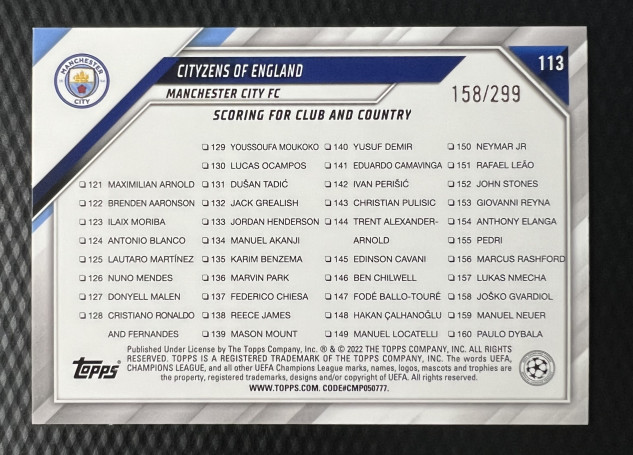 You are purchasing a 2022-23 Topps Cityzens Of Englan #113 Silver Parallel/Variety. You will receive the exact item in the photographs. Thank you for looking.