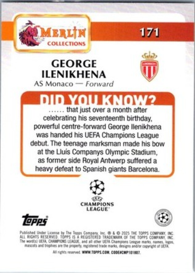 2024-25 Merlin UEFA Club Competitions #171 George Ilenikhena Atomic