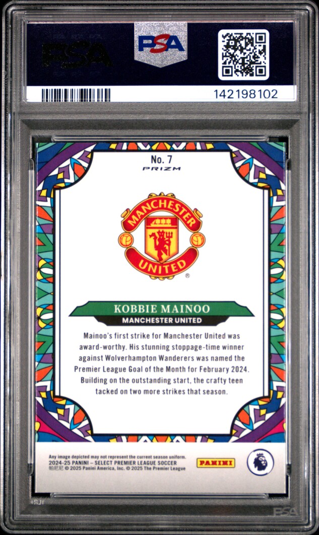 You are purchasing a 2024-25 Panini Select Premier League Stained Glass Kobbie Mainoo #7 PSA 10. You will receive the exact item in the photographs. Thank you for looking.