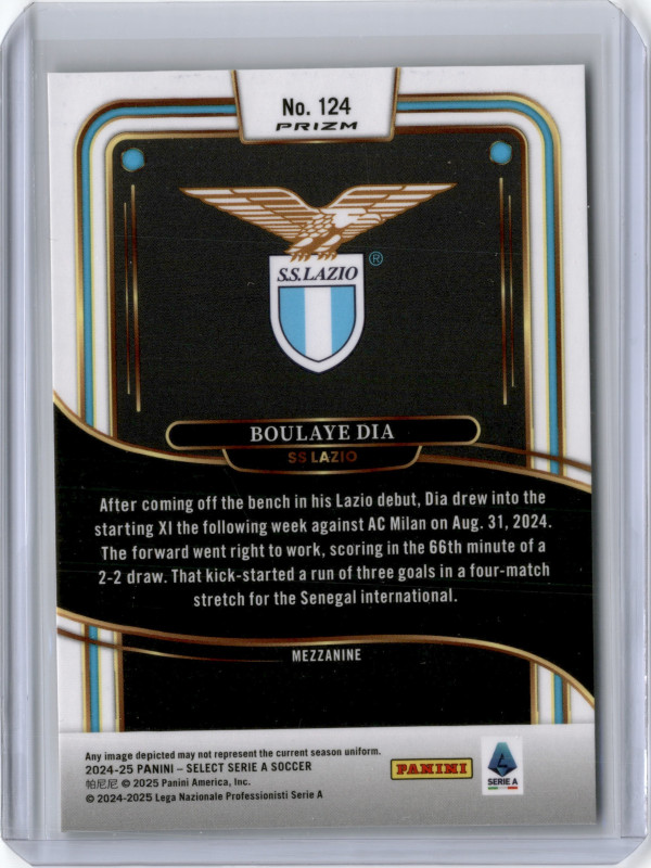 You are purchasing a 2024 SELECT SERIE A BOULAYE DIA WHITE SPARKLE MEZZANINE. You will receive the exact item in the photographs. Thank you for looking. Check our SM for news and updates 2Kingscards