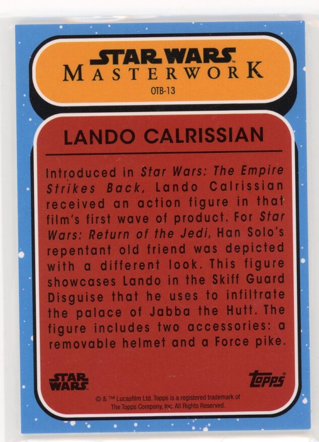 2021 Topps Star Wars Masterwork Lando Calrissian Out of the Box #OTB-13