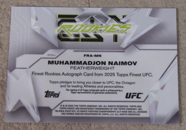 2025 Topps Finest UFC Muhammadjon Naimov RC Rookie Gold Auto /50