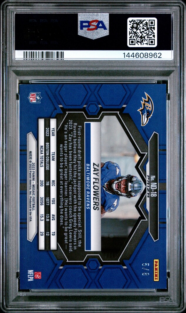 2023 Panini Mosaic ⚫️🥇Black Gold Choice Zay Flowers RC #5/8 SSP PSA 9 Ravens!