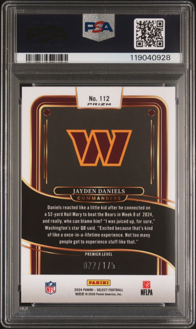 2024 Select 🔵🔥Blue Jayden Daniels RC Premier #22/175 PSA 9 Mint! Commanders!